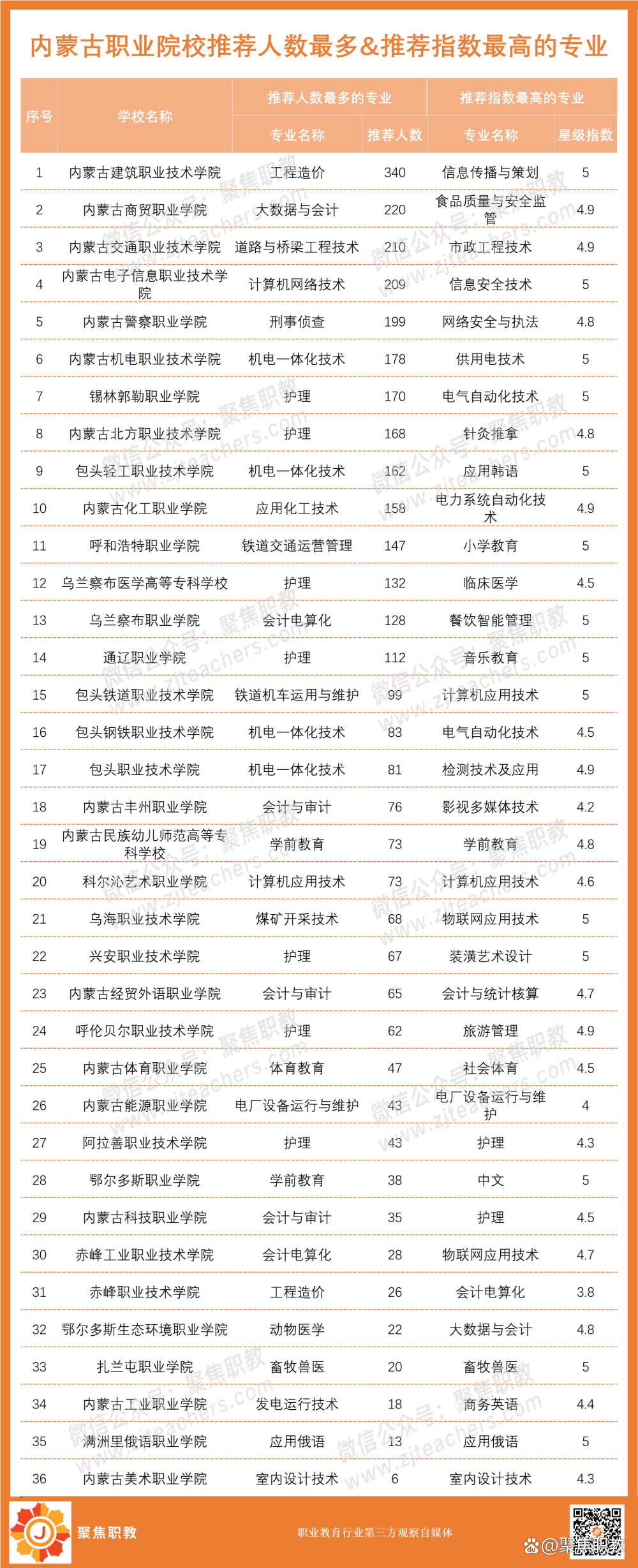 然而,职业院校专业众多,每个专业都有其独特的地方和发展前景,这给学生们带来了不小的困惑和选择难点。因此,聚焦职教根据阳光高考官方平台的数据,进行搜集统计后,整理出各地区省份职业院校推荐人数最多的专业以及推荐指数最高的专业,大家可以作为参考。